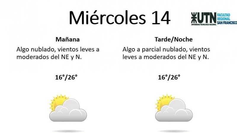El miércoles se presentará "algo a parcial nublado, con vientos leves a moderados del NE y N". La mínima pronosticada es de 16° y la máxima de 26°.