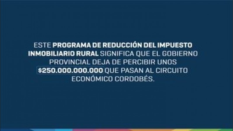 Con este Programa de Reducción de Impuesto Inmobiliario Rural, el gobierno provincial deja de percibir unos $250.000.000.000 que pasan al circuito económico cordobés.