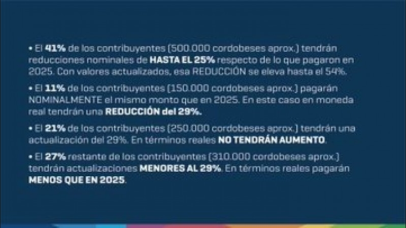 - 11% (150.000 cordobeses) pagarán nominalmente lo mismo que en 2025, lo que implica una reducción real del 29%.