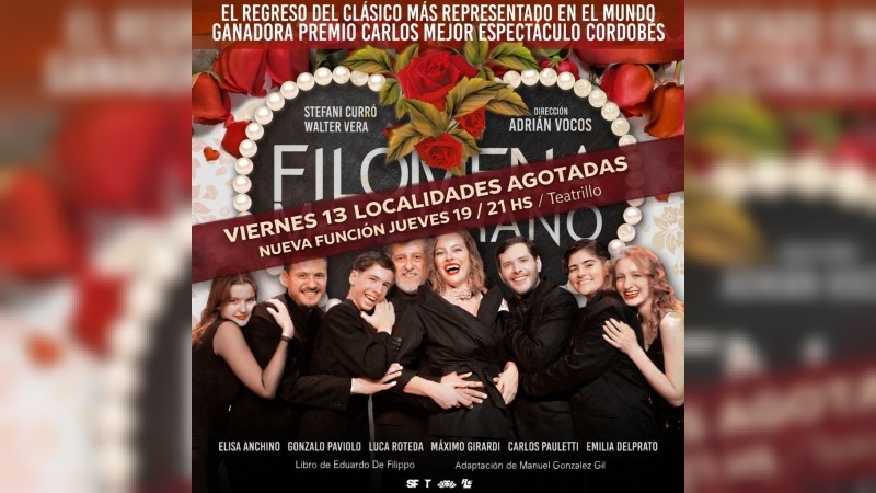 Tras el gran éxito de su primera presentación, “Filomena Marturano” suma una nueva función el jueves 19 de marzo a las 21 horas en El Teatrillo, brindando otra oportunidad para que el público pueda disfrutar de esta destacada propuesta teatral. La obra llega a la ciudad luego de consagrarse como uno de los grandes éxitos de la temporada 2026 en Villa Carlos Paz, en el Teatro Candilejas, donde fue distinguida con el Premio Carlos al Mejor Espectáculo Cordobés y obtuvo más de cinco nominaciones. Cabe destacar que la función prevista para el 13 de marzo se agotó, lo que motivó la incorporación de esta nueva fecha.