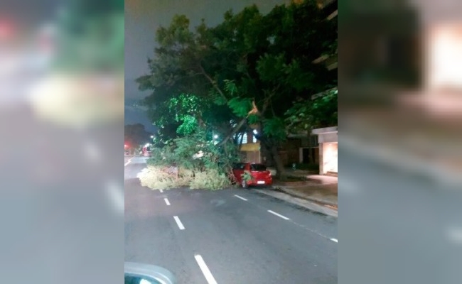 Vecinos de algunos distritos de CABA como Belgrano y Palermo comenzaron a compartir imágenes de árboles caídos y calles anegadas por la importante cantidad de agua que cae desde la madrugada de este martes.