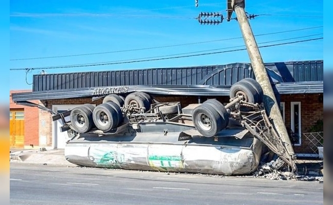 Como consecuencia del tremendo impacto, el acoplado derribó parcialmente un poste de cemento del sistema eléctrico de alta tensión y La Playosa quedó totalmente a oscuras.