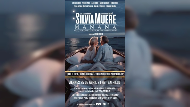 Regresa el aclamado ciclo de Radioteatro en el Teatrillo, homenaje a Alberto Migré. Producido por la Comedia San Francisco y dirigido por Adrián Vocos. En “Silvia Muere Mañana”, nos adentramos en la mágica y serena ciudad de Luján, un lugar donde el tiempo parece haberse detenido y la fe florece en cada rincón. A pesar de los vaivenes del mundo moderno, Silvia enfrenta su destino con valentía. La incertidumbre de su mañana nos invita a cuestionar: ¿Quién se atreve a privarle a la vida la promesa de un nuevo amanecer? A través de sus ojos, exploramos la lucha entre el desasosiego y la esperanza, recordando que, incluso en los momentos más oscuros, siempre hay un atisbo de luz.