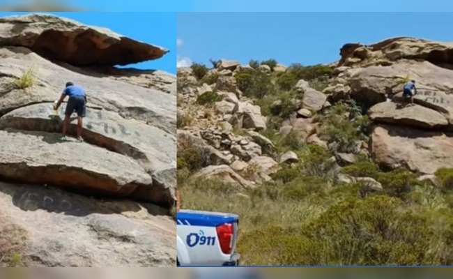Obligaron a un turista a limpiar una piedra que vandalizó en las Altas Cumbres