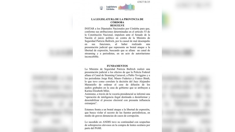 Reclaman el juicio Político a Patricia Bullrich