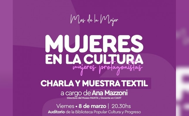 Morteros organiza muestra textil y charla con Ana Mazzoni en el Mes de la Mujer