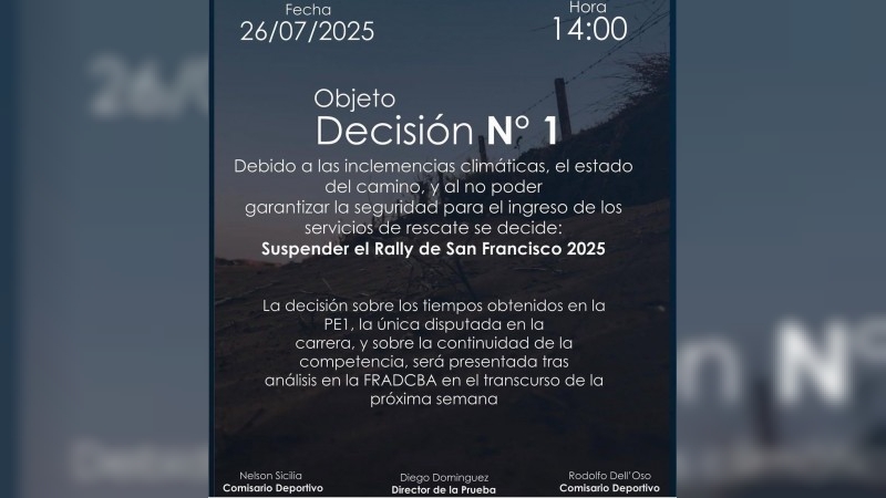 Suspensión del Rally en San Francisco por condiciones climáticas adversas