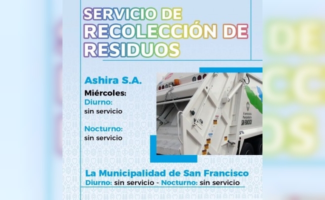 A cargo de la Municipalidad de San Francisco:
