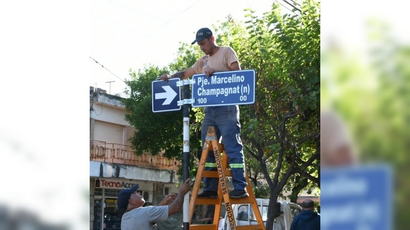 Más de 600 nomencladores renovados en zonas clave, como Avenida Hipólito Yrigoyen, calle Buenos Aires, y barrios como 20 de Junio y Cottolengo.