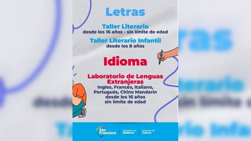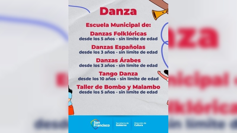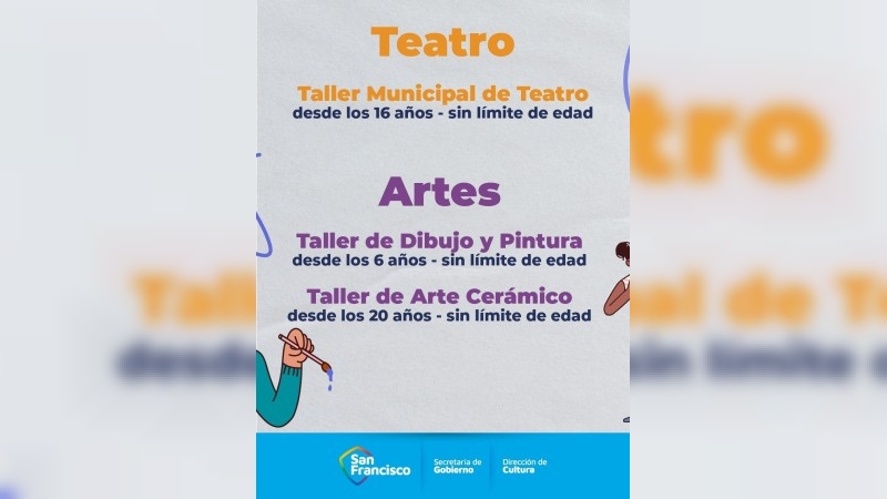 La Municipalidad de San Francisco, a través de la Dirección de Cultura, informa que se encuentran abiertas las inscripciones para los Elencos y Talleres Municipales correspondientes al ciclo 2026.