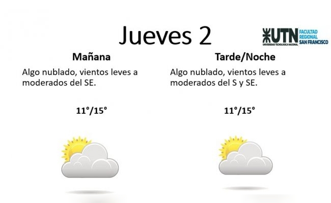 El jueves, por su parte, estará "algo nublado, con vientos leves a moderados del SE y S". La temperatura mínima es de 11° y la máxima de 15°.