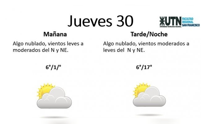 El jueves, por su parte, estará "algo nublado, con vientos leves a moderados del N y NE". La temperatura mínima es de 6° y la máxima de 17°.