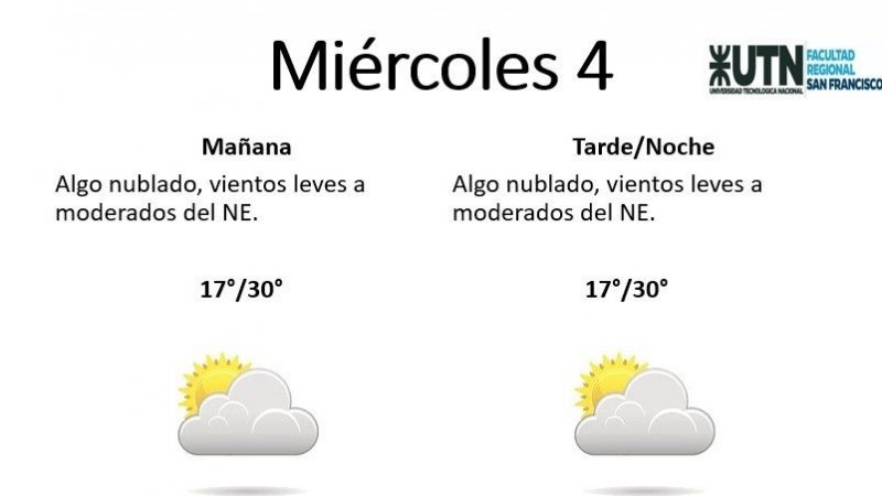 El miércoles se presentará "algo nublado, con vientos leves a moderados del NE". La mínima pronosticada es de 17° y la máxima de 30°.