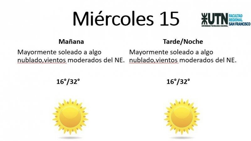 El miércoles se presentará "mayormente soleado a algo nublado, con vientos moderados del NE". La mínima pronosticada es de 16° y la máxima de 32°.