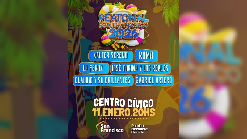 En el escenario se presentarán este domingo “Walter Sereno”, “La Feroz”, “José Turina y Los Reales”, “Roma”, “Gabriel Artero”, y “Claudio y sus Brillantes”, ofreciendo una variada grilla musical para todos los gustos. Desde la organización confirmaron que el escenario se montará en el mismo sitio que el año pasado, es decir al norte de la Tecnoteca. El evento contará con baños químicos, servicio de ambulancia y seguridad. Vale decir que no se realizará corte de calles como sí se llevaba a cabo en otras ediciones, garantizando el normal funcionamiento del tránsito en el sector. El director de Cultura, Gabriel Quaranta, destacó la importancia de esta edición. “La Peatonal es un espacio que ya forma parte de la identidad cultural de San Francisco. Poder realizarla en el Centro Cívico renovado nos llena de orgullo y nos permite ofrecerle a la comunidad un entorno más cómodo y moderno para disfrutar en familia. Estas propuestas no sólo fortalecen la vida cultural de la ciudad -valoró el funcionario- , sino que también generan oportunidades para músicos, artesanos y gastronómicos locales”.