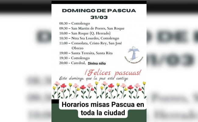 En los flyers anexos se pueden leer todos los servicios que se realizarán el fin de semana pascual