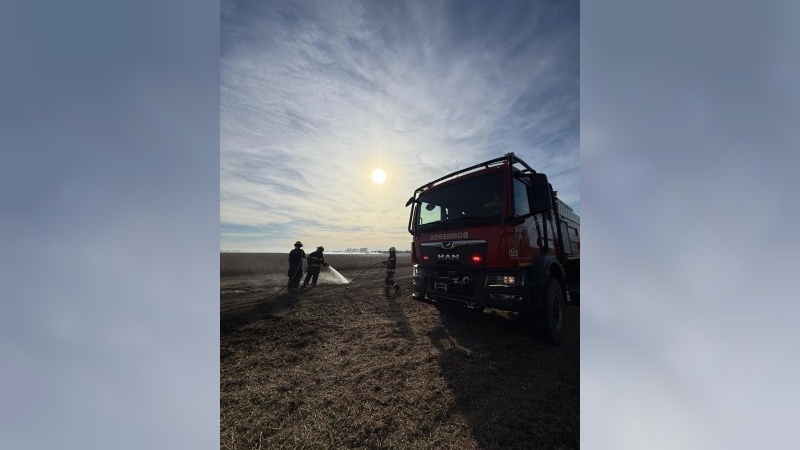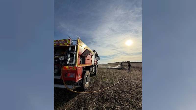 En la tarde del martes, bomberos trabajaron en un incendio de campo y maquinaria agrícola.