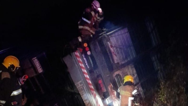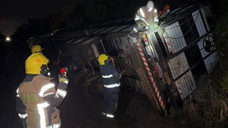 El camión jaula doble piso se encontraba acostado sobre la cuneta y si bien bomberos utilizaron una motopiedra y llaves tubo para abrir la puerta trasera y sacar los animales vivos, esta tarea se dejó sin efecto, dada la cantidad de animales muertos. También trabajaron en el lugar personal policial y de seguridad ciudadana cerrando para permitir el traslado de los animales hacia el Frigorífico.