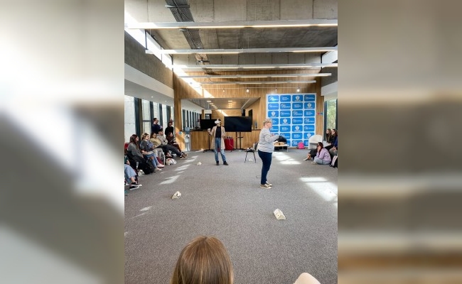 La charla, de la que participaron unos 40 estudiantes, estuvo a cargo de Triana Mendes Caldeira y el objetivo principal apuntaba a facilitar la integración de estudiantes con la práctica laboral a través de un enfoque que busca fortalecer la conexión entre la teoría y la práctica, así como fomentar la colaboración interdisciplinaria entre las asignaturas involucradas y el contexto.
