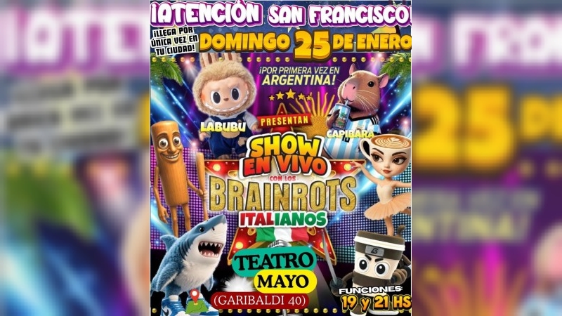 “Show en vivo con Brainrots Italianos” llega este domingo al Teatro Mayo