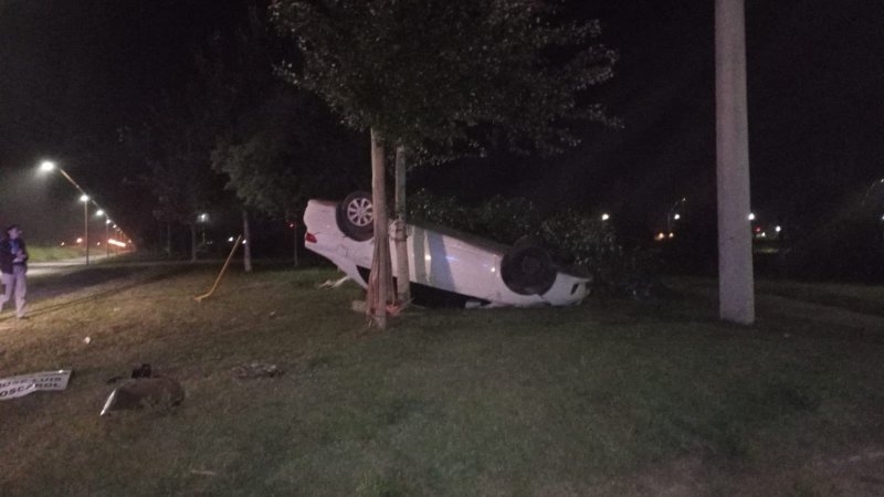 Accidente con vuelco en barrio Palmares 4