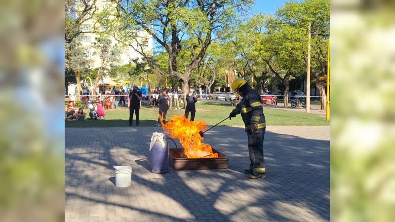 Bomberos realizaron una demostración en la plaza cívica