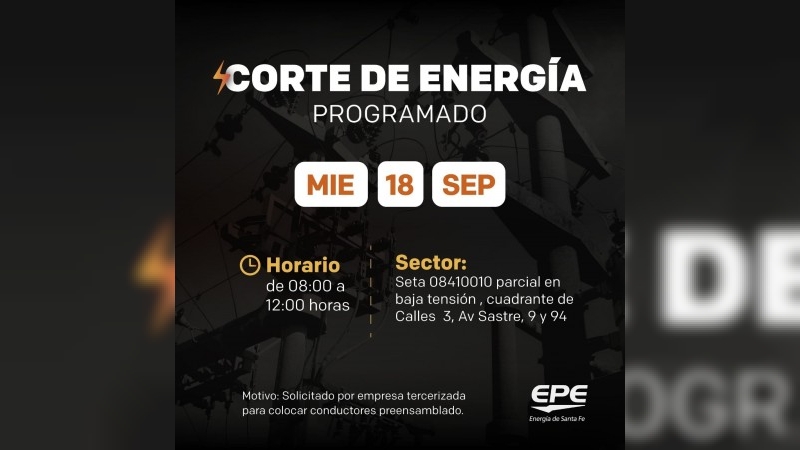 Corte de energía programado para este miércoles