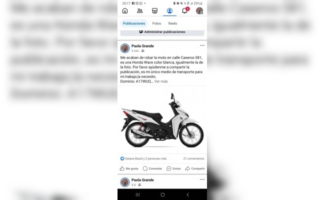Le robaron la moto el fin de semana: pide ayuda para recuperarla