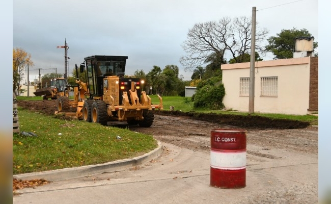 Comenzaron a pavimentar calles Deán Funes y J. J. Paso en los cruces del FFCC Mitre