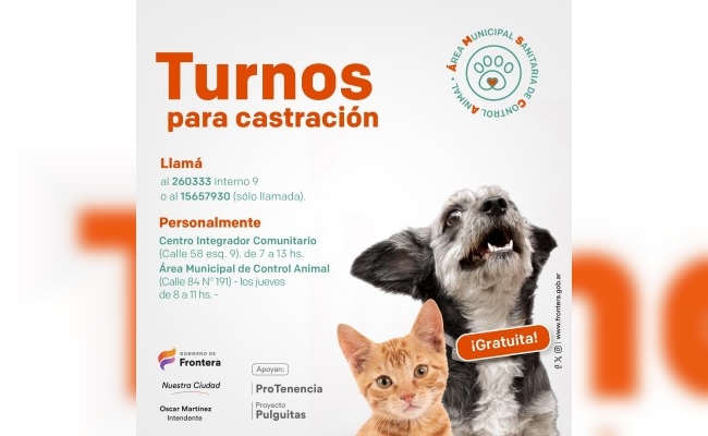 Frontera: se llevarán a cabo turnos gratuitos para castraciones de mascotas