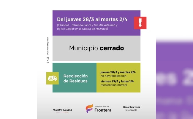 Feriados de Semana Santa: modalidad de servicio de dependencias municipales