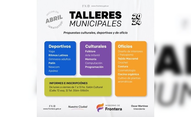 Frontera: se abrirán inscripciones para los Talleres Municipales 2024