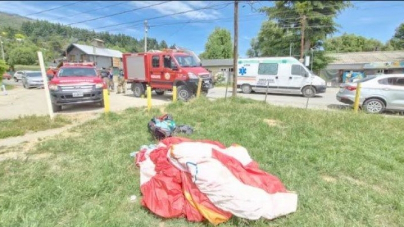 Una turista hacía parapente en Bariloche, quedó enredada en los cables de electricidad y dejó a un barrio sin luz