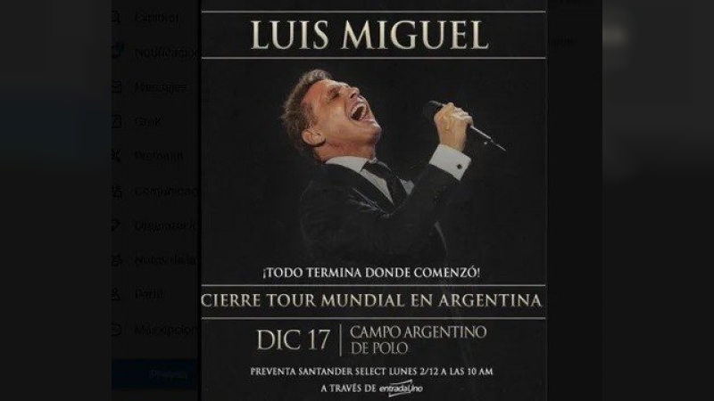 EXCLUSIVO: Luis Miguel cierra su gira mundial en Argentina el 17 de diciembre