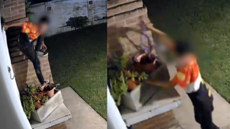 El nene ladrón volvió a robar: saltó la tapia, se llevó cables y quedó filmado