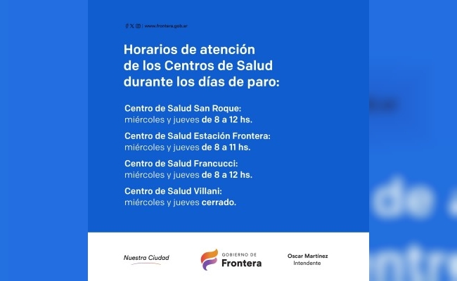 Frontera: horarios de atención de los Centros de Salud