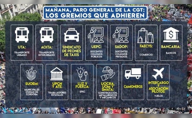 Arrancó el paro general de la CGT: los servicios que están paralizados en Córdoba