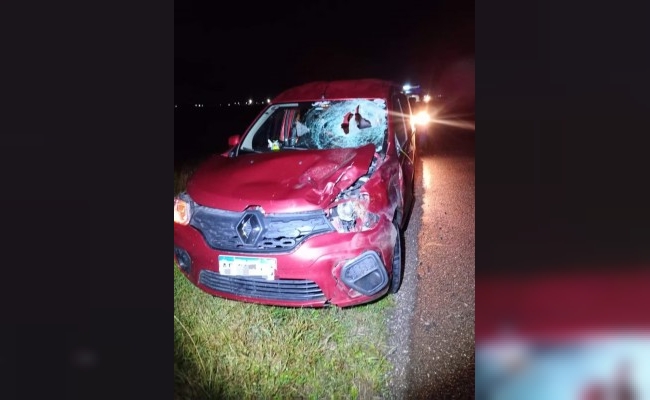Viajaban por la autopista Córdoba-Rosario y chocaron contra un inesperado animal
