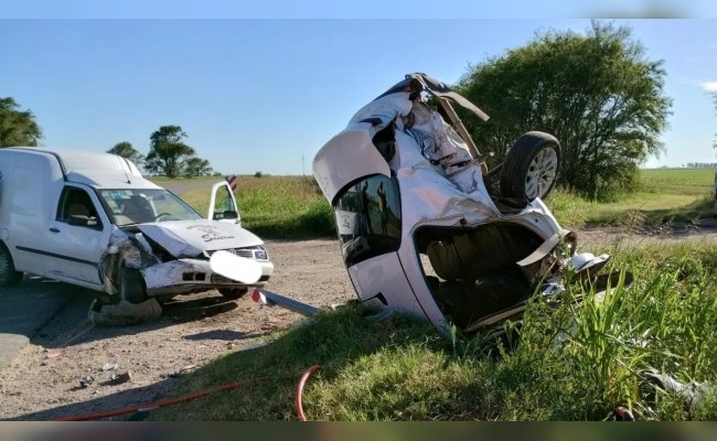 Impresionante accidente dejó a un auto incrustado de punta en la banquina